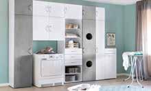 Schränke, Regale und Kommoden. Planbar in cmSchritten und in 4 Höhen, 6 Breiten und 4 Farben.