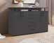 Schickes Wohnprogramm in Mauve Eiche Nachbildung, kombiniert mit Absetzungen in Schwarz.