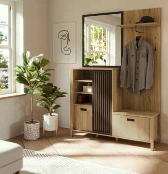 Garderobenprogramm im Landhausstil. Die Sibiu-Lärche-/San Remo hell Nachbildung sorgt für eine gemütliche Atmosphäre in Ihrem Flur.