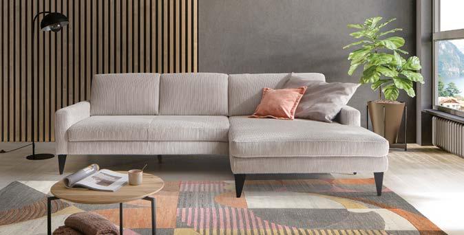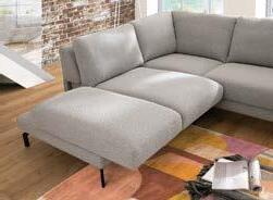 Glanzstück für Individualisten !! Diese Recamiere kann in unterschiedlichen Größen zusammengestellt werden. Abgebildete Kombination: Spitzecke seitlich links offen + 1 Sitzer mit Abschlußhocker rechts; Länge ca. 227 cm in Stoff Alexa 1.298,-; Metallfuß schwarz