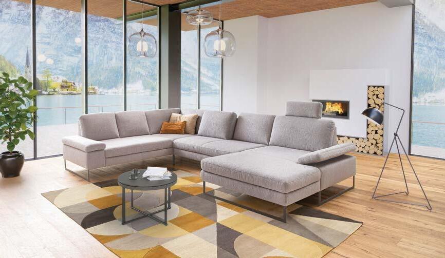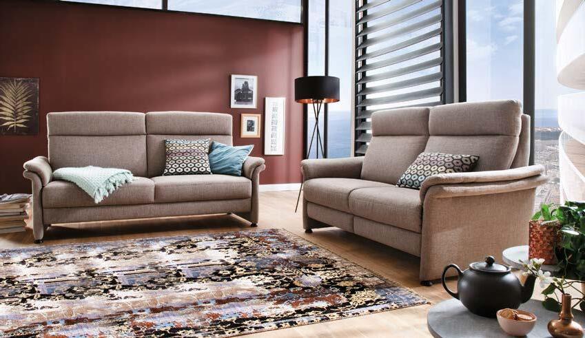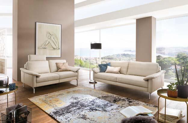 W2 beige; Armlehne A; Metallfuß gebürstet; Kissen sind Deko 2-Sitzer ca. 149 cm; 1.350,Kopfstütze 160,2,5-Sitzer ca. 169 cm; 1.450,-