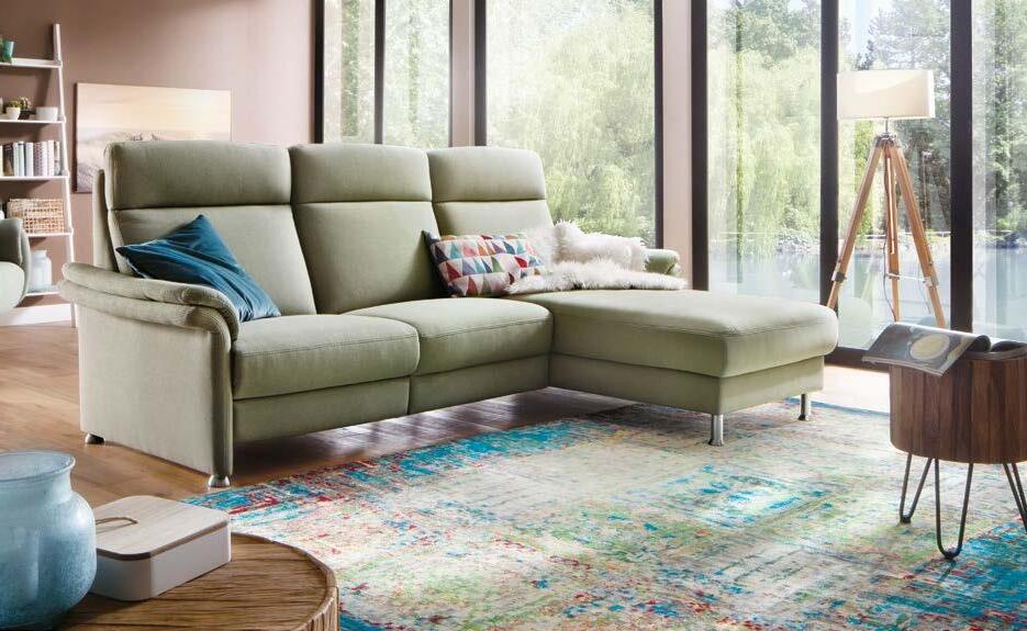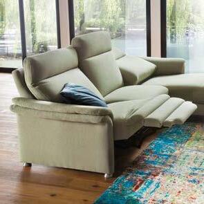 Praktischer Sitzauszug im Ecksofa, motorisch stufenlos um ca. 26 cm ausfahrbar; gegen Mehrpreis