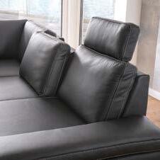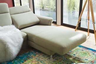 Longchairkombination in Leder; Armlehne A; ca. 177 x 260 cm; inkl. Metallkufen gebürstet; Kissen sind Dekoration