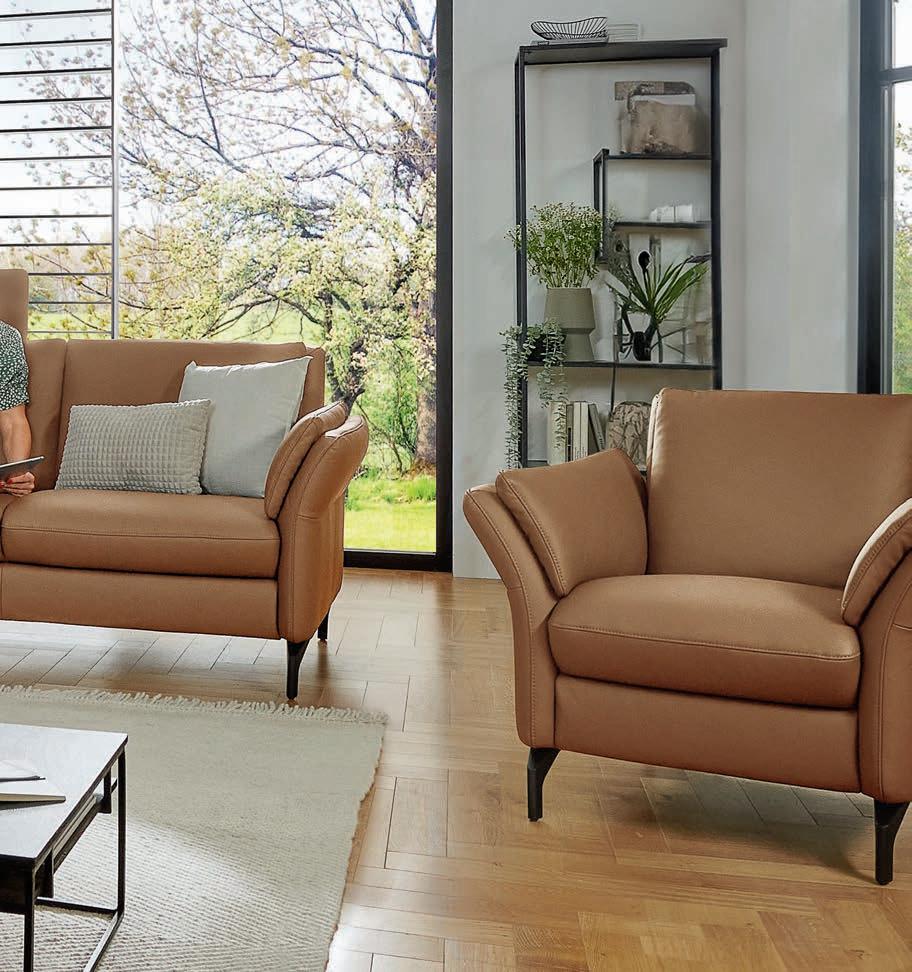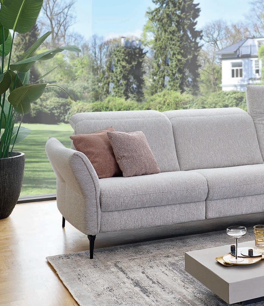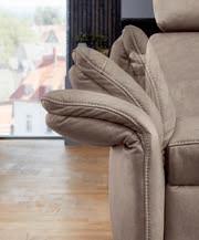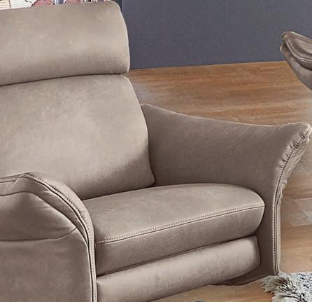 Die schlanke Armlehne mit dem innen aufgelegten Kissen wirkt leicht und äußerst gemütlich. Diezusätzliche Möglichkeitder Verstellung sieht man dem Abschluß nicht an. Passend für jede Lebenslage! Mehrpreis je 69,-