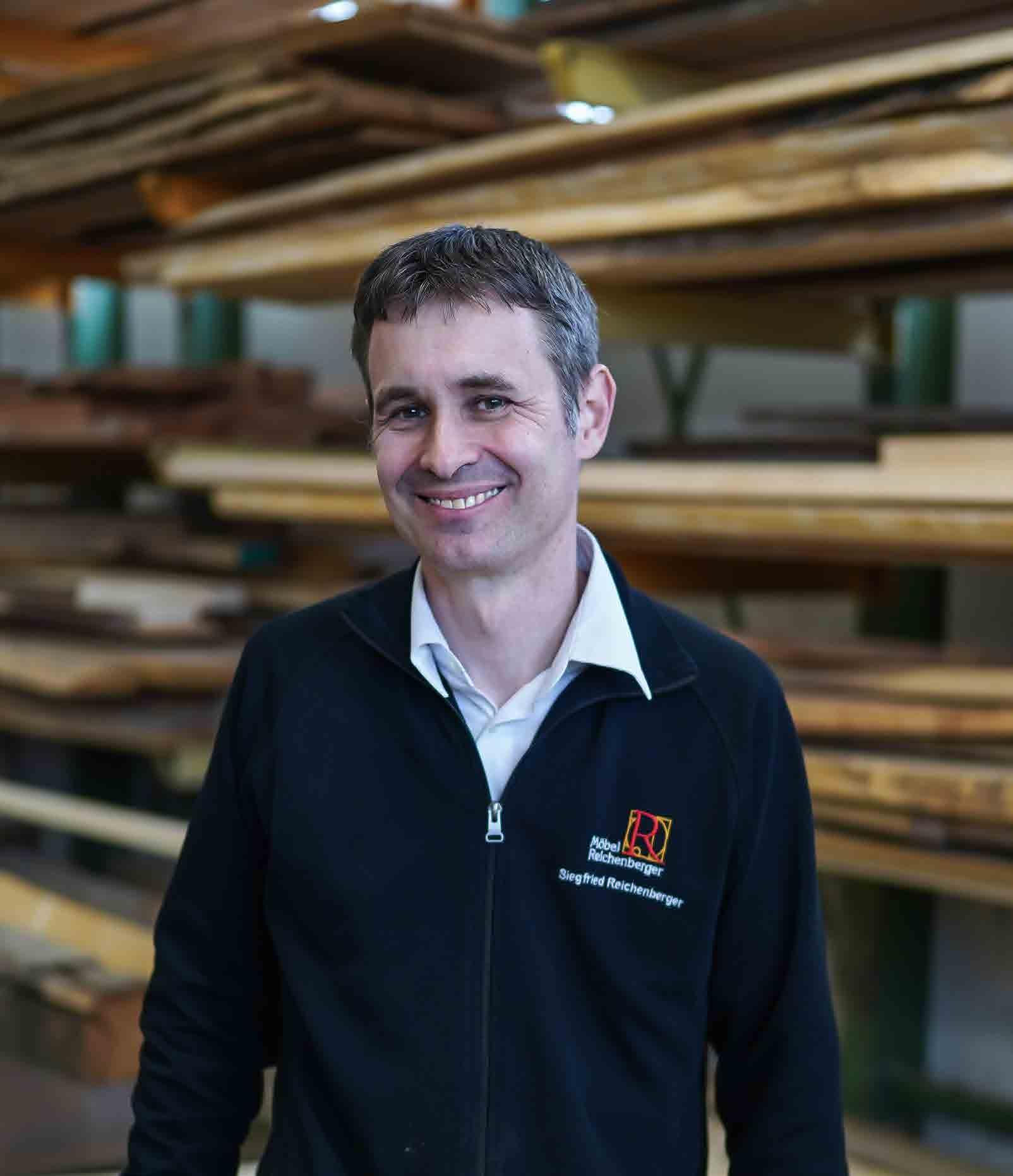 „Im Laufe der Jahre konnte ich mich ständig fortbilden und mehr und mehr Verantwortung übernehmen. Mittlerweile kümmere ich mich unter anderem um den hochmodernen Maschinenpark und die Leitung der Schreinerei. Meine Frau ist nach 10-jähriger Kinderpause auch wieder zurück im Unternehmen. Wir haben mit Möbel Reichenberger einen verlässlichen Arbeitgeber vor Ort.“
