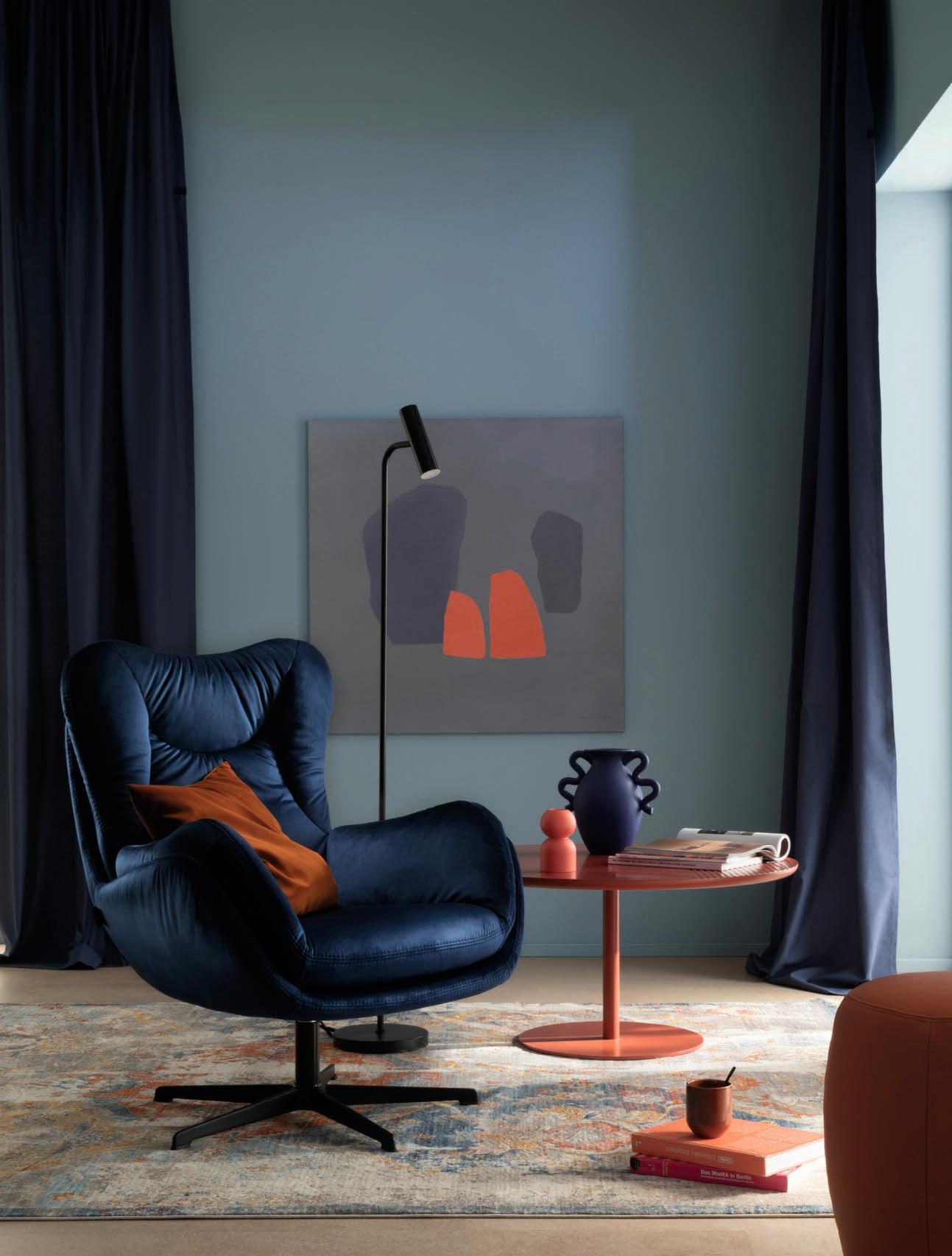 Wer jetzt die Trendnetze auswirft, macht reichen Fang an Aquatönen. Ob Azurblau oder Ultramarin – der Sprung ins Meer garantiert Abkühlung. Blau erfrischt und sorgt außerdem für Entspannung. Für alle, die Hektik vor der Haustür lassen wollen, ist Blaumachen die Königsidee. Unser Tipp: feurige Rottöne als kräftiger Kontrast und ausgleichende Wärmespender.