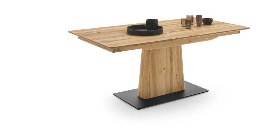 Wir träumen doch alle von einem großen Tisch, an dem sich Familie und Freunde heute am liebsten treffen. Nicht jeder wohnt in einem geräumigen Loft und hat Platz dafür. Die Lösung: Esstische wie CROSS*, den es in drei festen Größen, aber auch als Auszugstisch gibt. Damit bietet er flexiblen Platz, spart aber Raum und sieht dabei modern und gemütlich zugleich aus. CROSS* streckt sich bei Bedarf dank eines Frontauszugssystems mit Klappeinlage, je nach Größe des Tisches um 65 oder 100 cm. Praktisch: Das markante Untergestell wandert beim Ausziehen auf kleinen Rollen ohne Kraftaufwand mit und es ist so positioniert, dass es beim Sitzen nie stört. Da steht dem Genießen nichts im Weg.