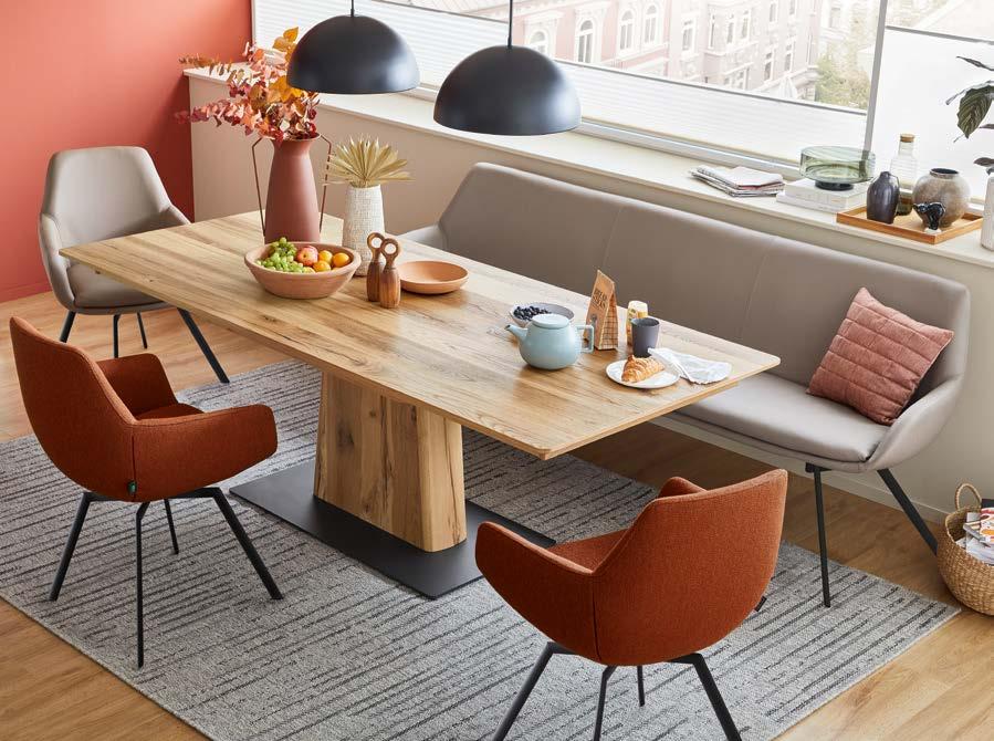 Rund, rechteckig oder quadratisch? Holz, Glas oder Keramik? Mit raffinierten Details wie beispielsweise einer zweigeteilten Tischplatte mit Baumkantenoptik innen und außen? Ihr Geschmack entscheidet – über Größe, Design und Funktion. Runde Tische fügen sich gut in kleine Raumecken, an einem quadratischen Tisch sitzt niemand weit entfernt, und an länglichen Tafeln kann man einfach gut Gruppen bilden. Holz wirkt immer warm, Glas ist immer elegant, und Keramik ist hart im Nehmen. Genießen Sie die süße Qual der Wahl!