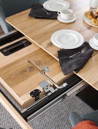 • Q uadratischer Esstisch, der mit zentralem Synchronauszug zum Rechteck wird