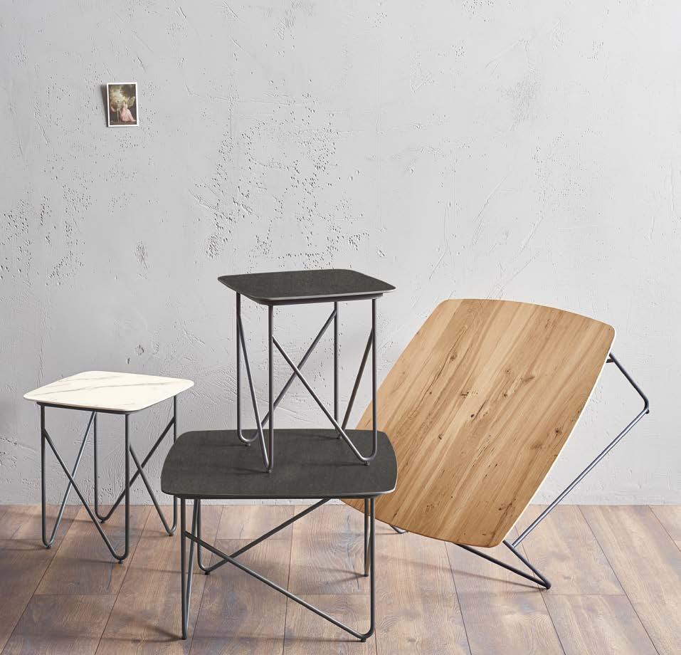 Wohin mit dem Heißgetränk, wenn man gemütlich auf dem Sofa sitzt? Wo wartet die Fernbedienung auf den nächsten Einsatz? Nicht nur der guten Ordnung halber brauchen wir eine Ablage, oder besser gleich zwei. Unsere Tischfamilie CONNECT* beherrscht den großen Auftritt als Solist, im Duett und als Trio sowieso. Dem steht auch Couchtisch SOLO* in nichts nach! Kombinieren Sie drei unterschiedliche Tischgrößen frei nach Belieben. Übrigens: Das filigrane Metallgestell kann mit Tischplatten aus Holz oder Keramik in Marmor-, Beton- oder Steinoptik kombiniert werden. Der Mix macht‘s!