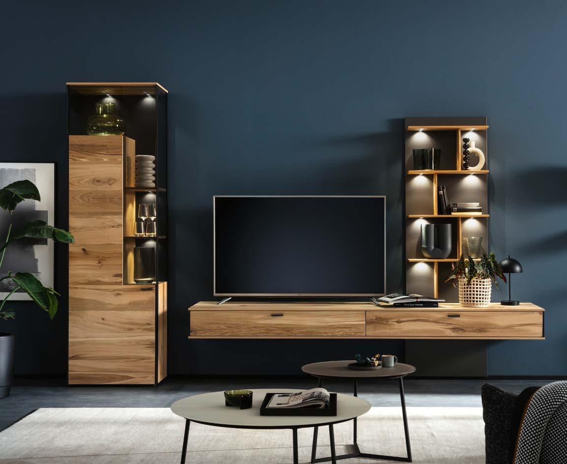 Ganz schön viel Holz in der Hütte. Stimmt, wir sind im Hüttenfieber. Aber es sieht gut aus, und das alleine zählt. Das Stauraumprogramm ANDRA* spielt mit Kontrasten, verbindet das lebendige Eichenholz rustico in wertigem, gebürsteten Starkfurnier mit feinen, anthrazit lackierten Metalllisenen, kombiniert offene Elemente mit geschlossenen Flächen und schafft so ein modernes Möbel, das ganz spielerisch Atmosphäre in Räume zaubert, ganz nebenbei Geschirr versteckt und schöne Dinge ins Blickfeld rückt. Wer Harmonie liebt, kombiniert zu ANDRA* den Esstisch CROSS* in der Ausführung Eiche rustico hell geölt. Dann wirkt das Esszimmer wie aus einem Guss.