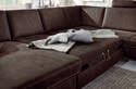 Trendige Einzelliege, inkl. 1 Nierenkissen, mit verstellbarer Armlehne entweder rechts oder links wählbar und Multifunktionsauszug zur Liegefläche von 92x200 cm. Maße ca. B:180 T:106 H:85 cm.