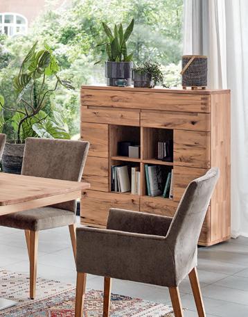 02 NATURA HOME Bakersfield Highboard, Korpus und Front: rustikale Asteiche massiv, natur geölt BHT ca. 154×124×45 cm, 2.199,–