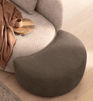 Die Sitz- und Liegefläche von NATURA HOME Karasu lässt sich durch einen Anstellhocker, der die schön geschwungenen Grundformen des Ecksofas aufnimmt, erweitern.