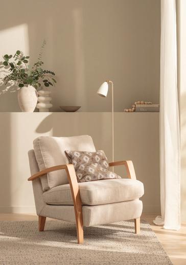 NATURA HOME Wilshere strahlt die Souveränität gekonnten Handwerks aus. Massivholzgestell und Armlehnen sind präzise aus hochwertigem Eichenholz gearbeitet.
