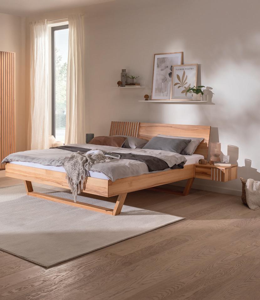 Unser Schlafzimmer ist unser Rückzugsort par excellence. Dort sollten die Bedingungen für Ruhe und Entspannung möglichst ideal sein. Wir können diese Atmosphäre schaffen: Durch Möbel aus natürlichen, warmen Materialien wie Massivholz, durch ein Konzept von aufeinander abgestimmten sanften, beruhigenden Farbtönen und einen bewussten Umgang mit Lichtquellen. So entsteht ein Raum, in den wir uns freudig zurückziehen, in dem wir guten und ausreichenden Schlaf finden und neue Kraft sammeln können.