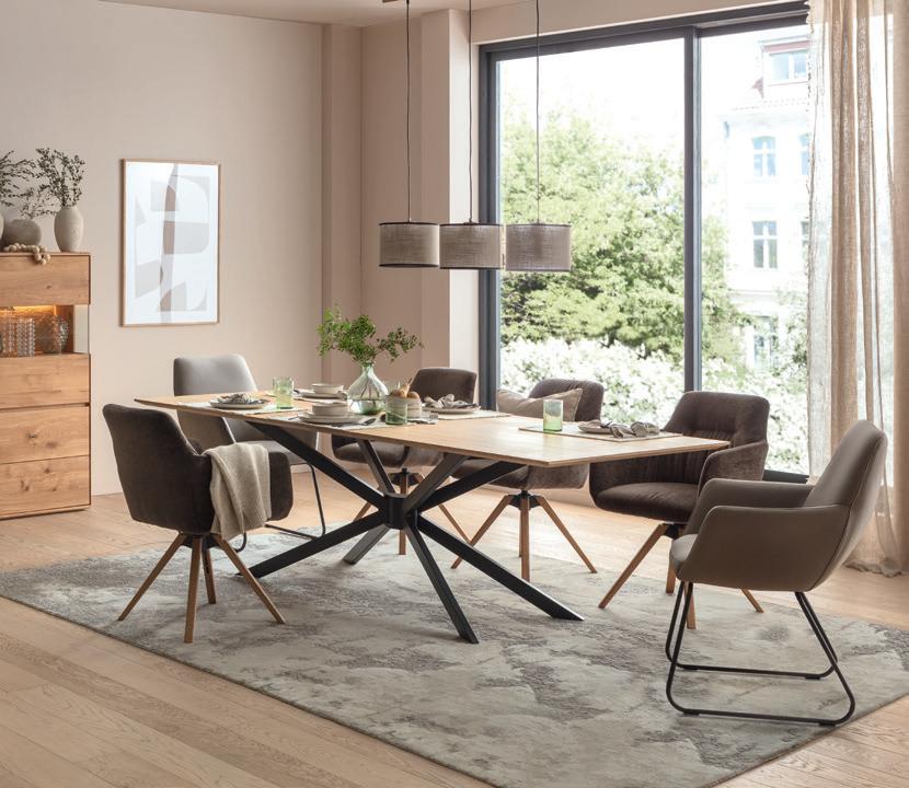 01 NATURA HOME Anaheim Ecksofa, Bezug: Stoff Storm 09 (100 % Polyester), best. aus: 2-Sitzer mit Armlehne links, Longchair mit Armlehne rechts, Sitzqualität: Boxspring, Holzrahmen & -gestell in Eiche geölt, BHT ca. 285×89×170 cm, 2.799,– 02 NATURA HOME Savannah Hängepaneel, Korpus und Front: Wildeiche massiv natur geölt, Metall schwarz, BHT ca. 35×135×24 cm, 429,– 03 NATURA HOME Savannah Sideboard, Korpus und Front: Wildeiche massiv natur geölt, Schubkastenfront sandgestrahlt, Metallfüße, BHT ca. 154×84×42 cm, 1.499,–