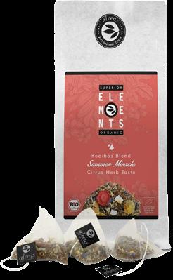 Fresh Blend Een bijzonder verfrissende en zachte blend met de kruidige smaak van verveine, citroengras, goudsbloembloesem met frisse tonen van papaja, citroen- en sinaasappelschil.