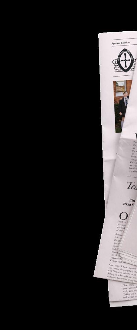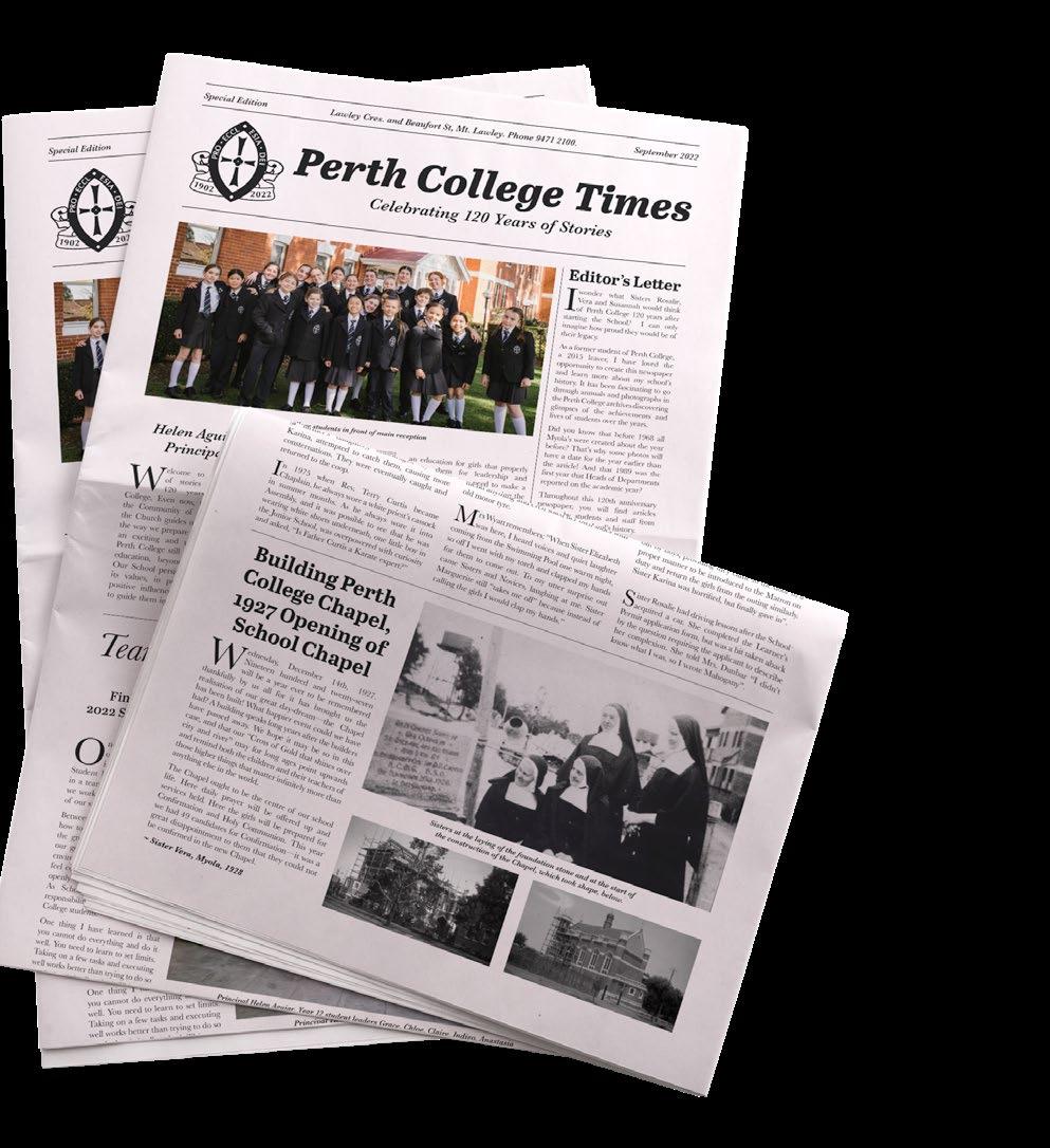 Perth College Times. The newspaper brings together stories, reflections and celebrations, past and present, a commemoration of the Vision and Values of our Founders, Sister Rosalie, Sister Vera and Sister Susannah, who sacrificed so much to achieve a “higher education” for girls that would – and continues to – equip and empower our Perth College students to confidently embrace opportunity and contribute to improving the world around them.