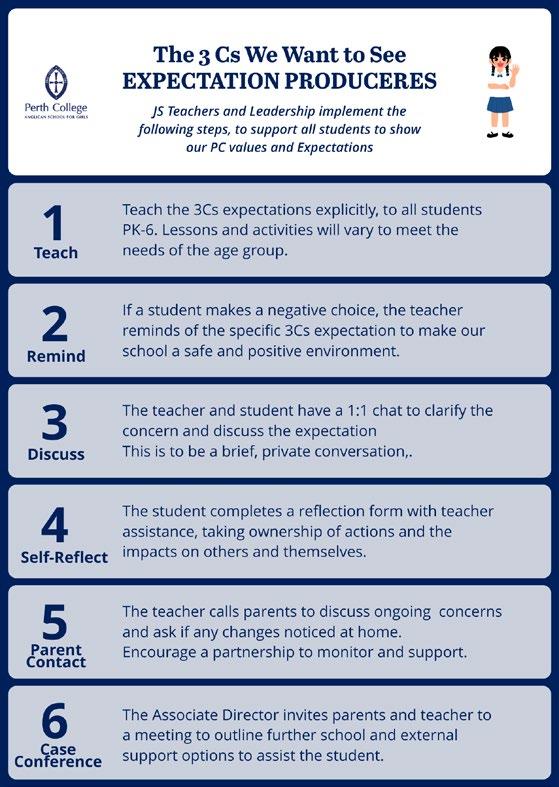 Junior School Staff have a consistent approach to embed the Perth College values; Capable, Courageous, Caring, which are also referred to as “The 3Cs We Want to See.”. Skills are taught explicitly, so students have a clear understanding of the expectations.