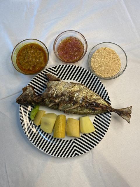 Después de lavar y retirar las escamas del pescado, sazónelo con sal, ajo y limón. Dejar el pescado en el aliño por 20 a 30 minutos Acontinuación,asarelpescado(preferiblementeconunaparrilladecarbón);
