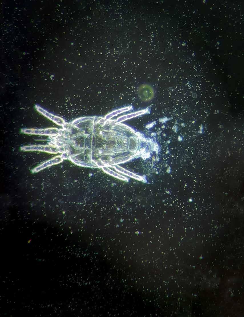 O ácaro Brevipalpus yothersi, visto ao microscópio, é uma estrela às avessas na citricultura: é hospedeiro e transmissor do vírus Cilevirus leprosis, causador da leprose dos citros. Saber quais plantas ele habita é essencial para garantir o manejo preventivo do pomar. Os pesquisadores identificam a espécie do invertebrado examinando o sistema reprodutivo ao microscópio e a do vírus presente nele por meio de análises moleculares.