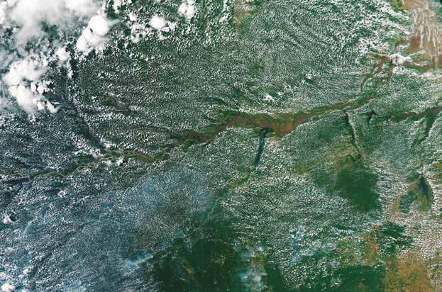 Cover Images taken by the Sentinel 2 satellite in July 2022 show deforestation in two areas of Rondônia: between the Madeira River and one of its tributaries, the Jamari River (cover), and in Cujubim (back cover). The earth-colored polygons are deforested areas and the small white patches are clouds. IMAGES SENTINEL 2 / ESA