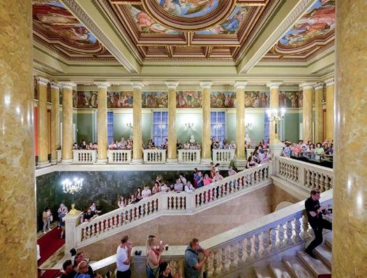 – Hozzám alapvetően pozitív visszajelzések juto ak el, az ünnepi elnökségi ülést követő napon egy résztvevő még a városban sétálva is megállíto , és gratulált. De ezen nem csodálkozom, mert ez egy hálás téma. A budapesti ügyvédek többségének nyilván nem ezek a történetek vannak a fejében a székház kapcsán, mikor idejönnek, hanem az olyan praktikus dolgok, hogy mit kell elintézniük, kivel kell találkozniuk. De ha az előadást követően már csak egy-egy apró részletre másképp tudnak tekinteni – észreveszik például a flóderes festést a Díszteremben, vagy beülnek a könyvtárba, és azon gondolkodnak, hogy a történelem egy pontján vajon ez tényleg vívóterem volt-e –, akkor ezekkel az információkkal gazdagabban ők már egyfajta „közös titok” ismerői lesznek. Az ilyen közös titkokon, saját, személyes történeteken keresztül tudjuk jobban megérteni, hol vagyunk, és ezeken keresztül tudunk érzelmileg is jobban kötődni az épülethez.