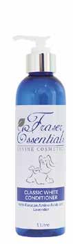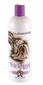 A conditioner specifically designed to condition white, silver or light-coloured dogs. Formulated with a nourishing base to alleviate dryness and will add an extra sparkle to light coats. Does not contain bleaching ingredients. This highly concentrated product can be diluted with other conditioners and should be rinsed thoroughly.