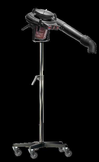 Powerful brushless motor with versatile heat and air volume controls. 5 legged stand base with gas spring loaded adjustments make height adjustment effortless, from as low as 19” up to 6’ 8” from floor level. Can be used with or without hose. Rustproof, dent proof housing. Extremely versatile!