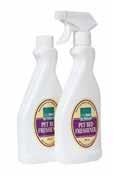 In ready to use spray bottles. A clear light oil that has been formulated to protect and moisturise the coat and skin.