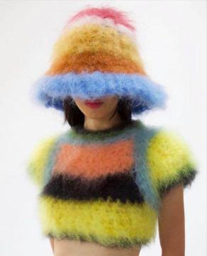 The concept : the growing use of digital tools and 3D printing technology inspires playful surrealism and trompe lʼoeil effects . Hard materials mimic so forms, while knitting is given a sculptural treatment.
