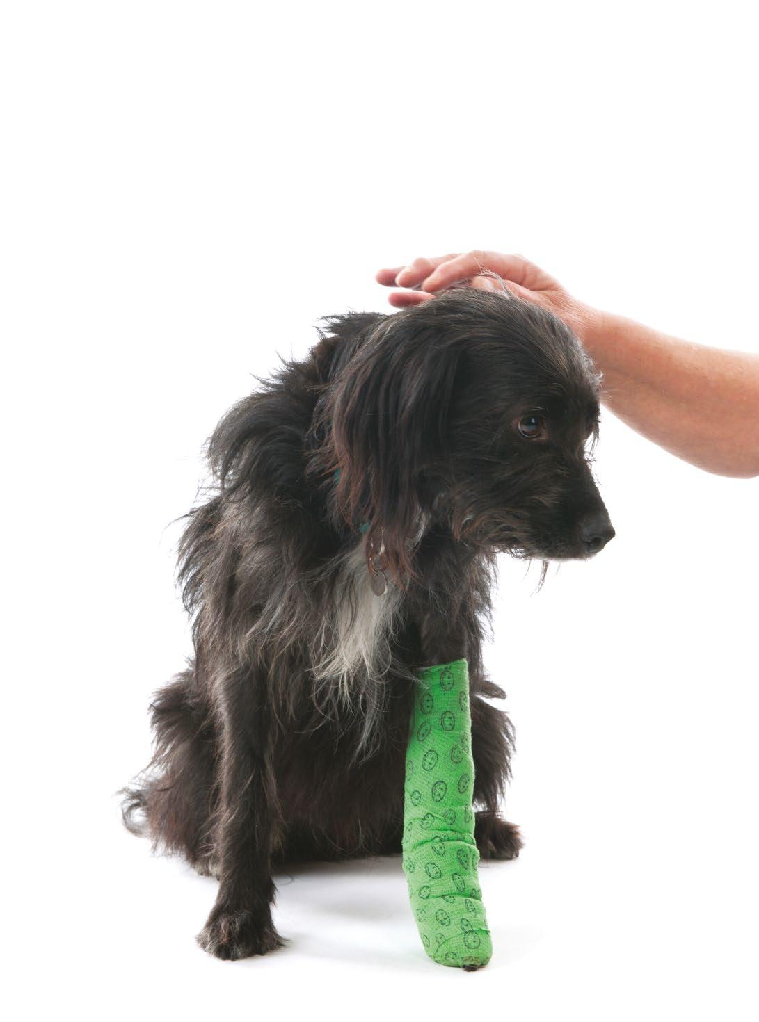 We use bandages for several reasons: to protect wounds from the environment, protect the environment from wounds, and to discourage a pet from licking or irritating a wound. Bandages may be applied as support for strains or sprains or to prevent motion. Proper application is important – an improperly applied or too-tight bandage can cause decreased blood flow and potential loss of the limb.