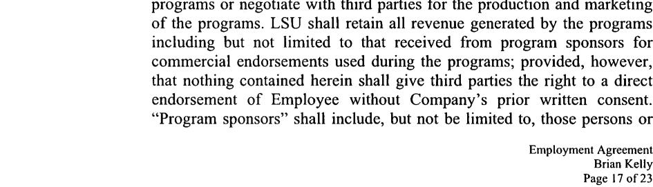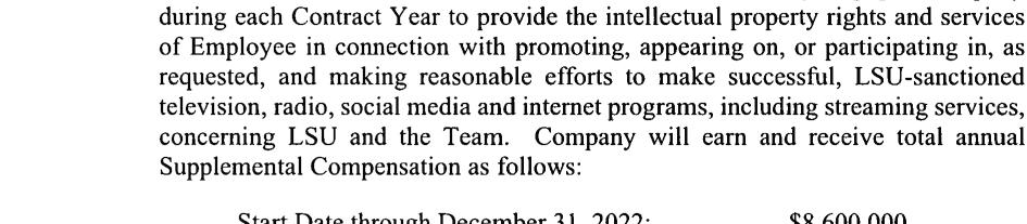 the following supplemental compensation payments (“Supplemental Compensation”) to Coach Kelly for his intellectual property rights and services in connection with LSU-sanctioned media: