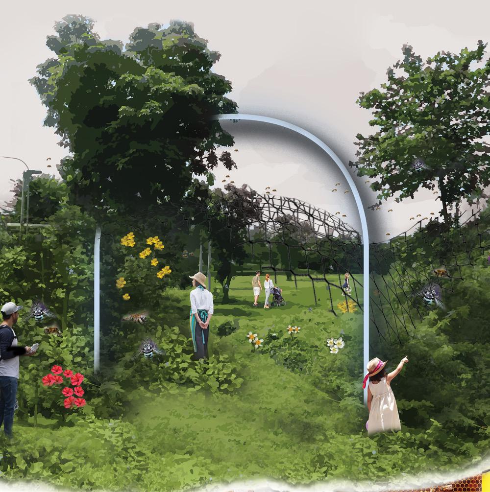 In order to this, we studied sun and water runoff in our site mapping as well as understanding their ecological behaviour, specifically with flora and fauna as their main food source. Thus our goal would be to create an urban infastructure which could help proliferate the growth of plants which would not only increase food supply for bees but create this supercharged park for humans as well.
