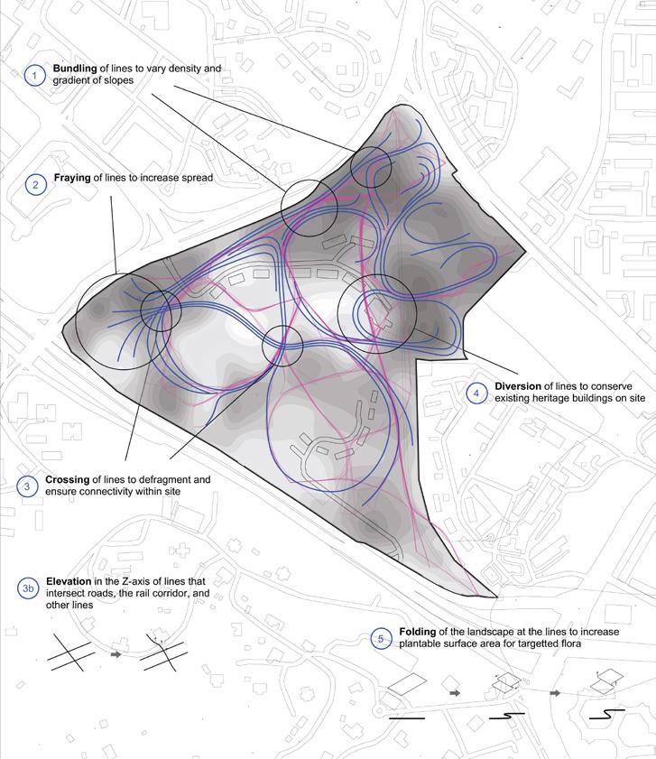Tactics of surface folding and plant swatches were thus employed in this strategy to create to produce this terracing effect across the park which can be seen in our speculative section.