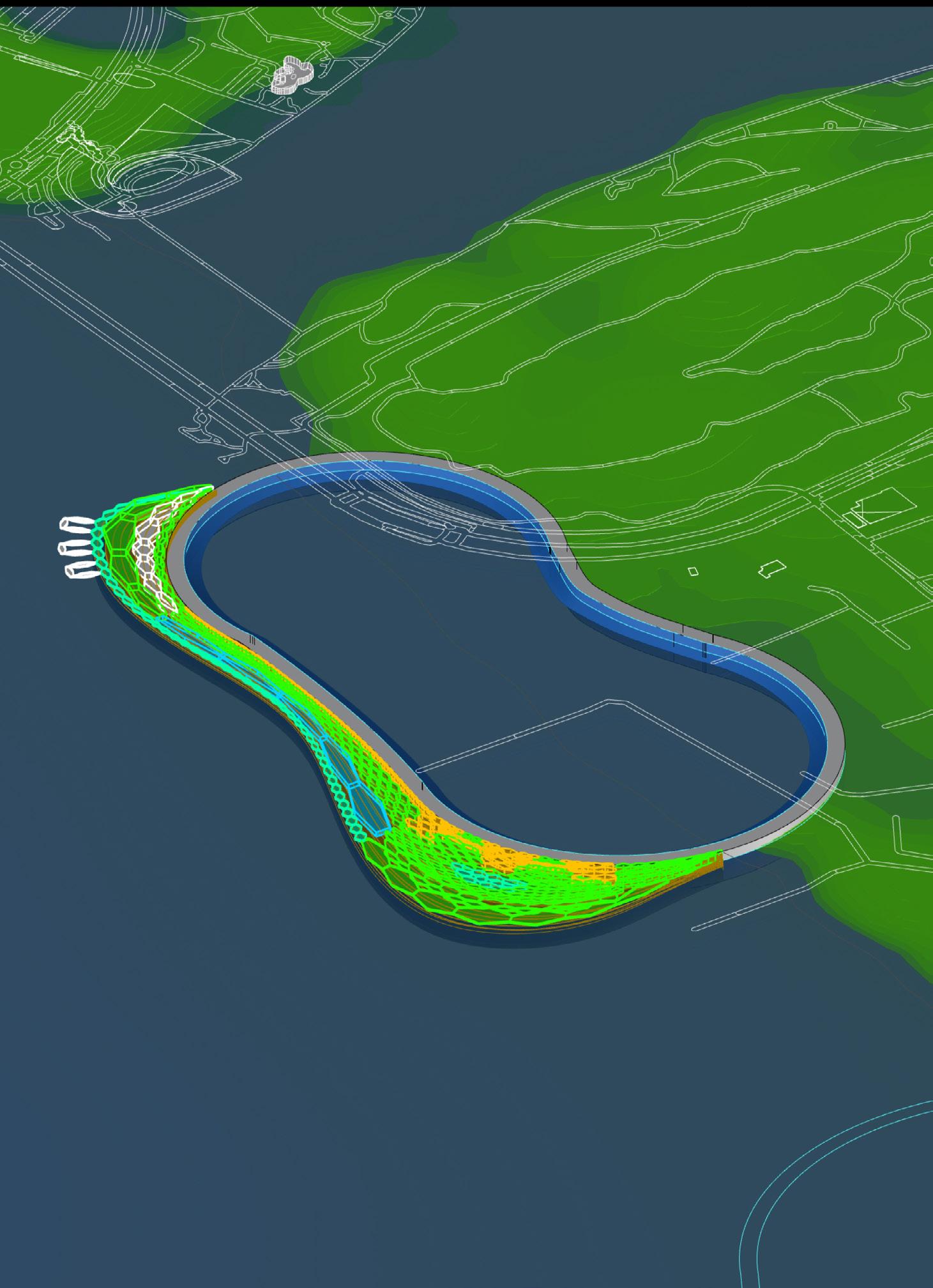 FIRST CREATING A BOUNDARY AND ACCESS POINTS FROM THE EXISTING BUS STOP AND WALKWAY. THE SURFACE IS THEN GENERATED USING LEG ANCHORS. CREATING POCKETS OF FLORA WITHIN THE MUSEUM AS ADDITIONAL ANCHORS, CREATES THE UNIQUE FORM FOR THE MUSEUM, AFTER WHICH THE GROUND IS THEN ARTICULATED AROUND IT TO FORM CONTINUOUS PATHS THROUGH THE MUSEUM TO THE SURROUNDING PARK.