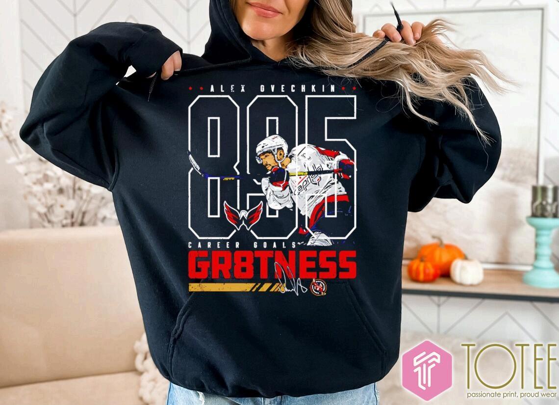 Experiencethe "AlexOvechkin895CareerGoalsGr8TnessWashingtonHockey SignatureT-shirt"excitementofowningapieceofhistorywiththeAlexOvechkin895 GoalsWashingtonHockeytee.ThisessentialcollectiblecelebratesOvi'sextraordinary achievement,makingitamust-haveforCapitalsfans.TheGr8Tnessteeisexpertly crafted,ensuringbothstyleandcomfort.Itservesasaconstantreminderofthe passion,dedication,andpuretalentthatmakesOvechkinalegend.Thist-shirtisa fantasticwaytodisplayyourunwaveringsupportforoneofthegreatestgoalscorers ofalltime.PurchaseyourGr8Tnessshirttodayandwearyourpride.