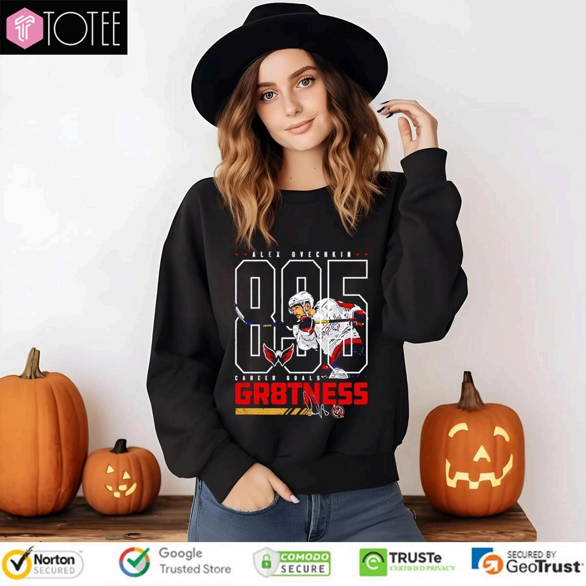 Gettheultimatehockeytee!FeaturingAlexOvechkin,celebratehis895goals&Gr8Tnesswiththissignatureshirt.