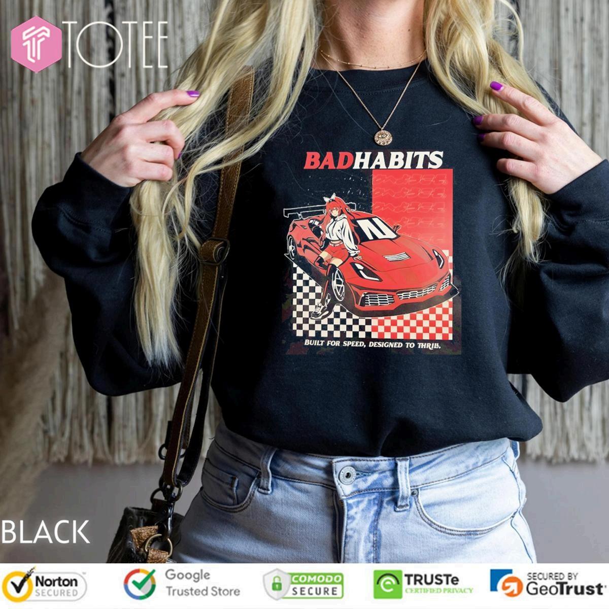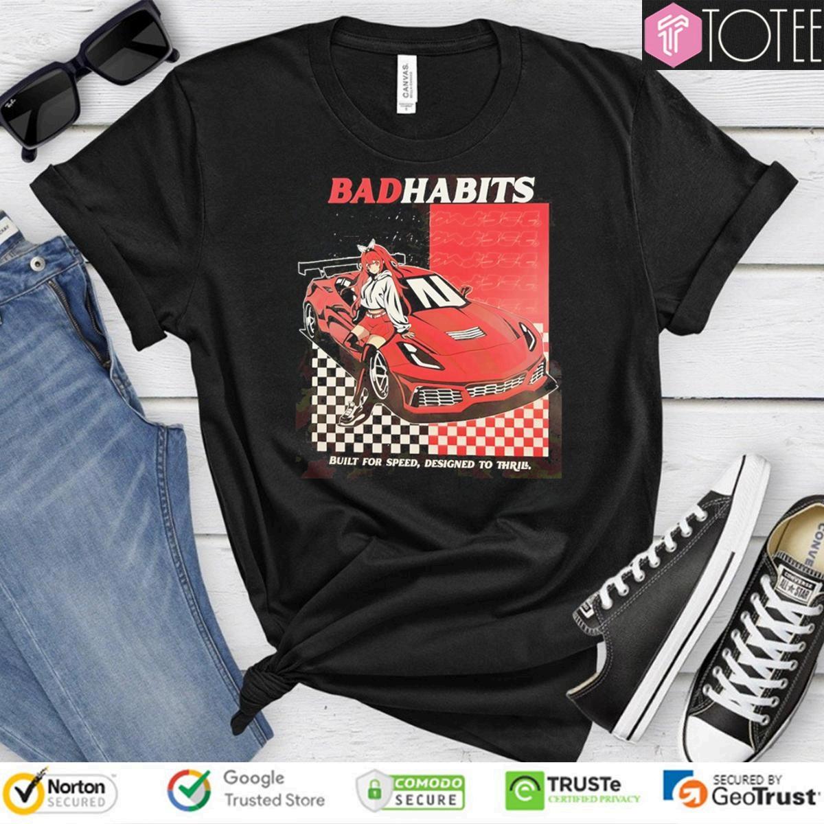 Findingthe "BadHabitsBuiltForSpeedDesignedToThrillT-shirt"perfectfitforyour