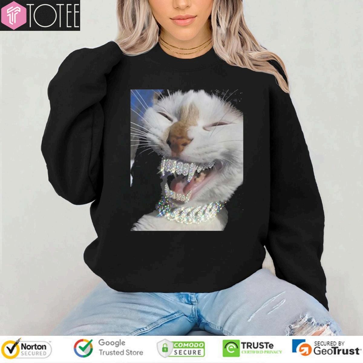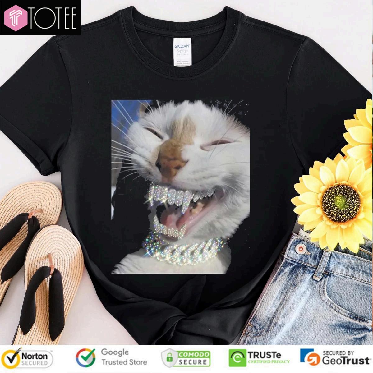 funnycatt-shirtwithblingteeth icedoutteethcatmemeshirtforkittens