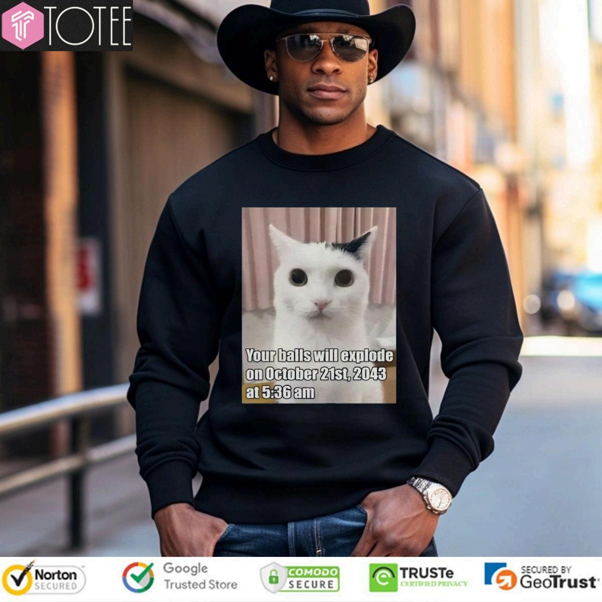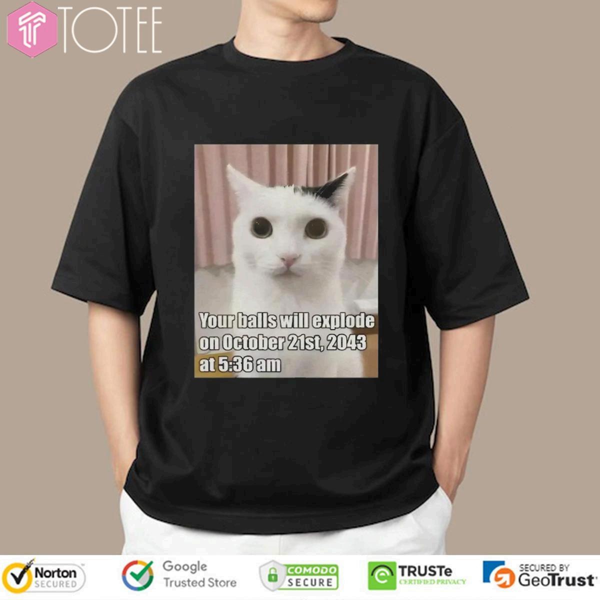 CatYourBallsWillExplodeOn October21St2043At536Am ApocalypseDateMemeT-shirt