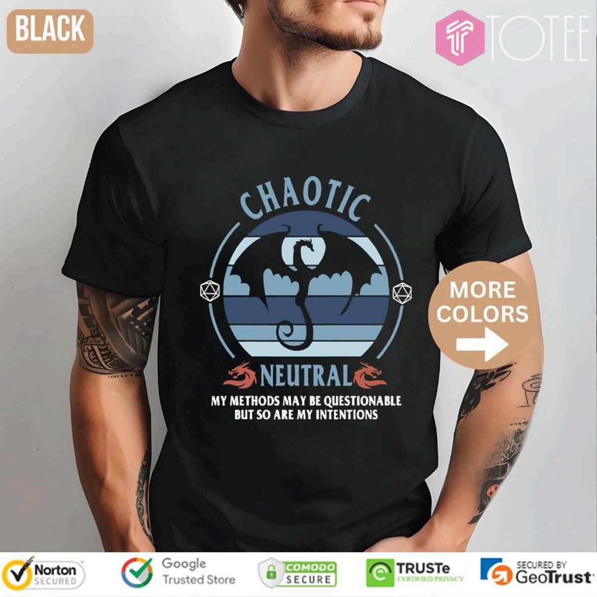 UnleashyourinnerChaoticNeutral!ThisD&Dt-shirtembraces questionablemethods&intentions.Grabyoursandshowthe worldyouralignmenttoday.Shopnow!