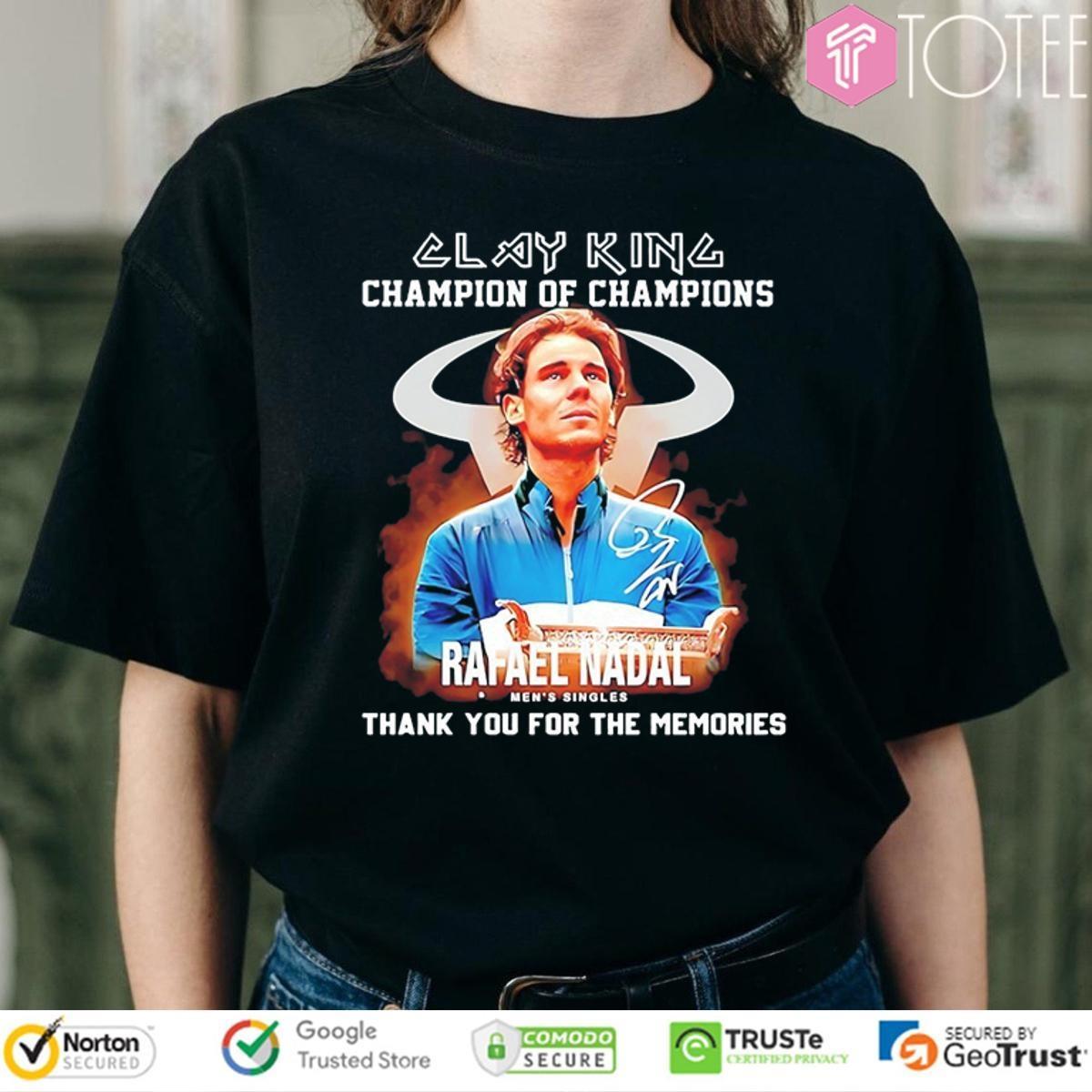 Clay KingChampion Of Champions Rafael Nadal Tee: Unleash your innerchampion. Show your Nadal allegiance withthis shirt. Premium comfort for all-day wear.