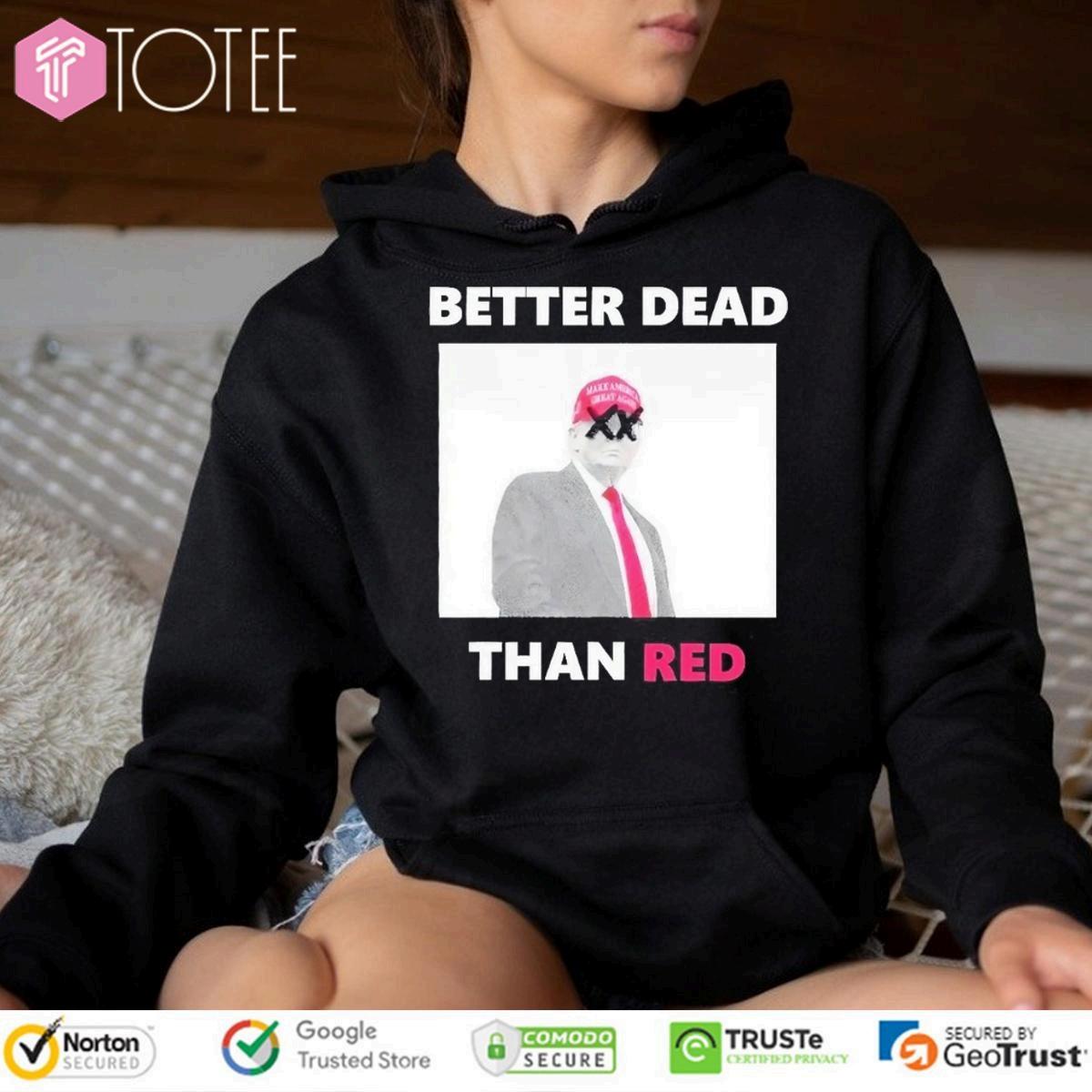 Getyourhandsonthe"BetterDeadThanRed"Trumpshirt.Makeastrongstatement,perfectforralliesandevents.