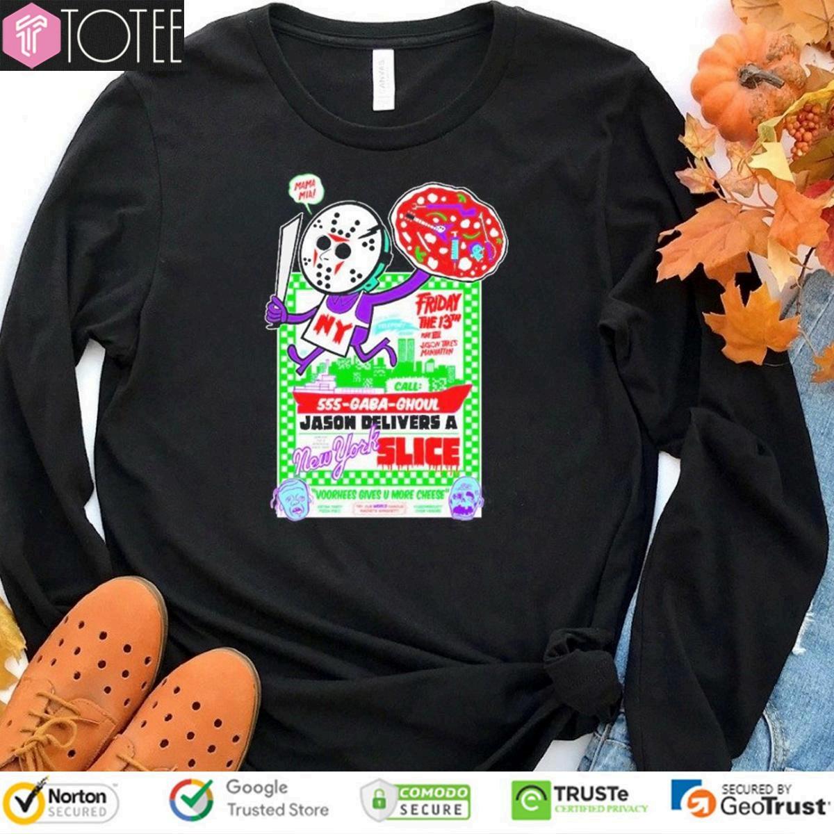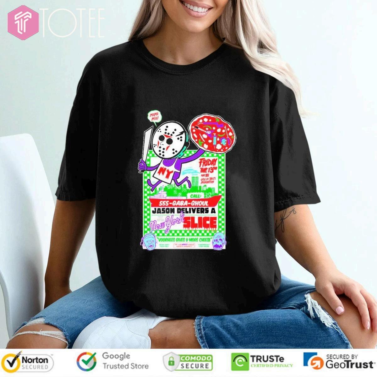 Readytoinfuseyour "FridayThe13ThJasonDeliversANewYorkSliceVoorhees GivesUMoreCheeseT-shirt"wardrobewithadoseofhorror-themedfun?It'stimeto
