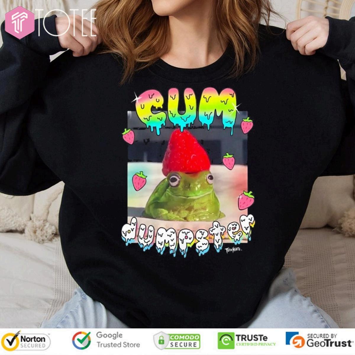 ShoptheFrogCumDumpsterT-shirt.Makeaboldstatement!Get yoursnowandembracetheunique.Limitedstock–dontmissout onthiseye-catchingtee!