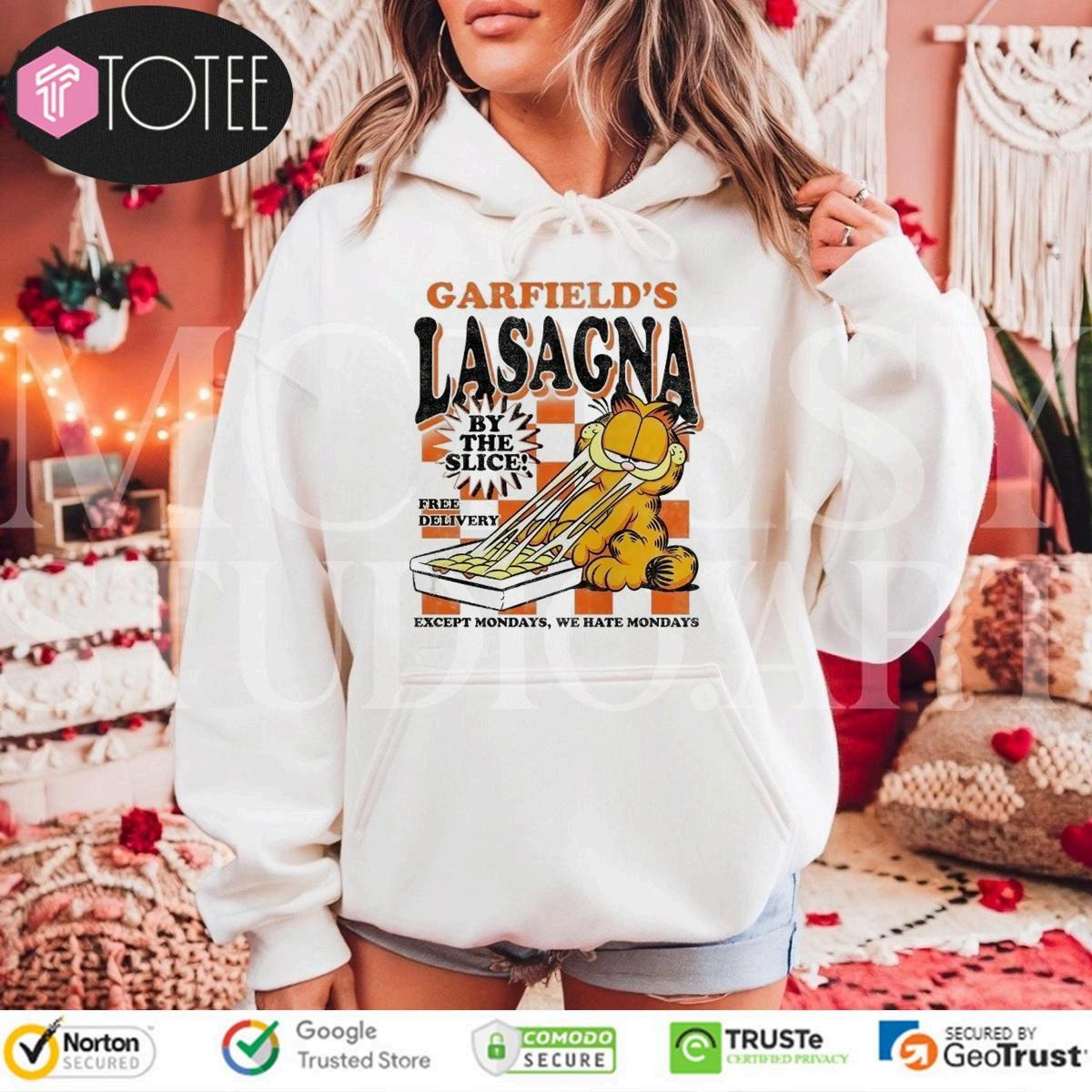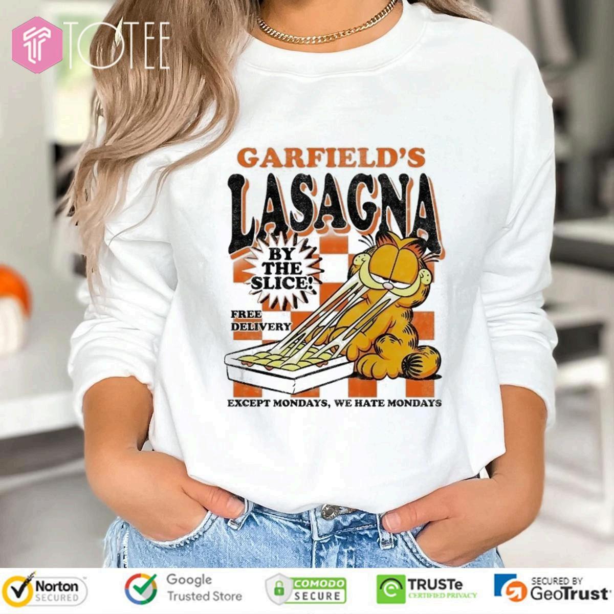 ExploreUniqueGarfieldLasagnaByTheSliceT-shirtsExcludingMondays