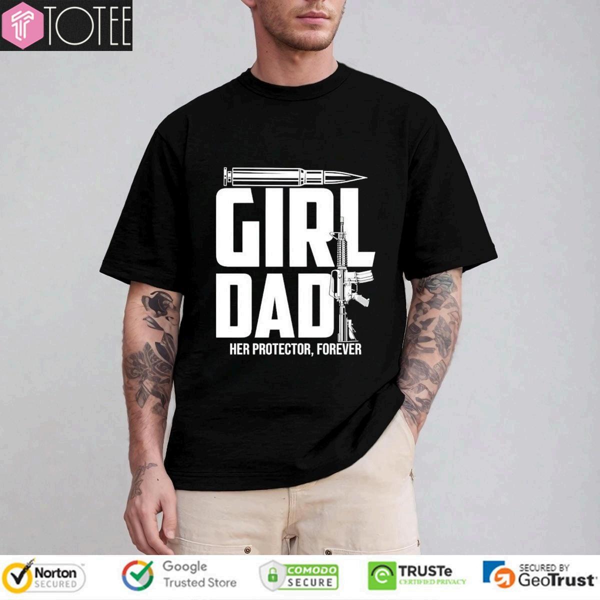 ShoptheGirlDadHerProtectorForeverGunT-shirt&showyour love.Protectyourdaughterwiththispowerfulmessage.Limited stock-Getyoursnow!