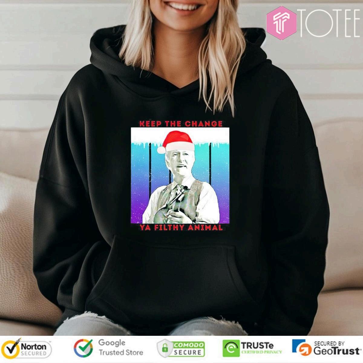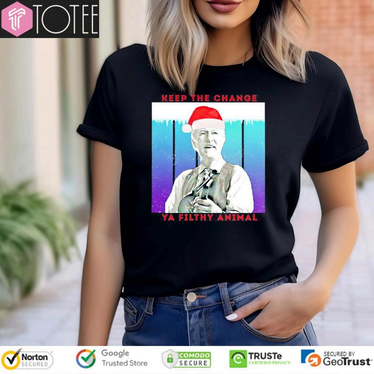 Don'twait!Secureyour "HomeAloneKeepTheChangeYaFilthyAnimalChristmas T-shirt""HomeAlone"themed"KeeptheChangeYaFilthyAnimal"Christmast-shirt andensureyouarepreparedfortheholidayseason.Withthepopularityofthis classicmovie,theseshirtstendtoselloutquickly.Browseonlineretailersand specialtystoresforawideselectionofdesigns,sizes,andfits.Besuretocheck customerreviewsandproductdescriptionstoensureyou'regettingaquality product.Withabitofresearch,you'lldiscoverashirtthatwillbringyoujoyforyears tocome.Getreadytospreadholidaycheerandnostalgiawithyournewfavorite Christmastee.